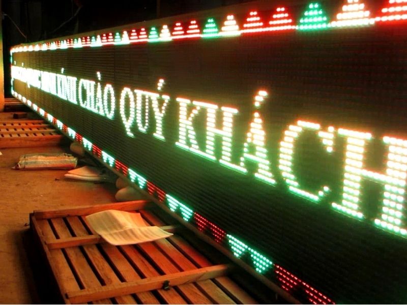 - Làm bảng LED Cuộn Chữ Dĩ An (LED Scrolling): Bảng hiển thị dòng chữ chạy qua màn hình, tạo hiệu ứng chuyển động thu hút, tthích hợp để truyền tải các thông điệp khuyến mãi, thông tin sự kiện với độ dài ngắn linh hoạt.