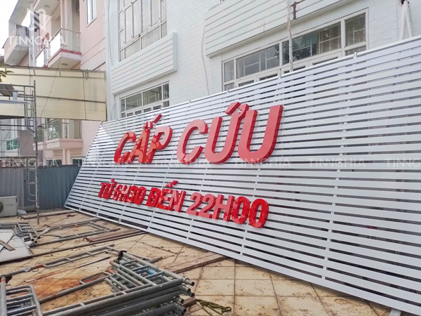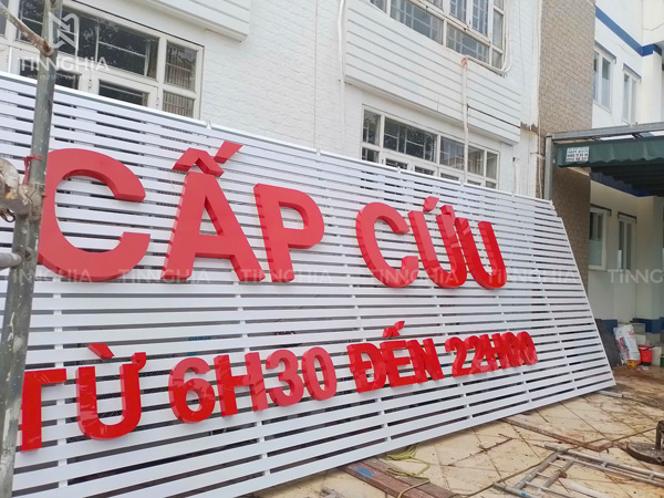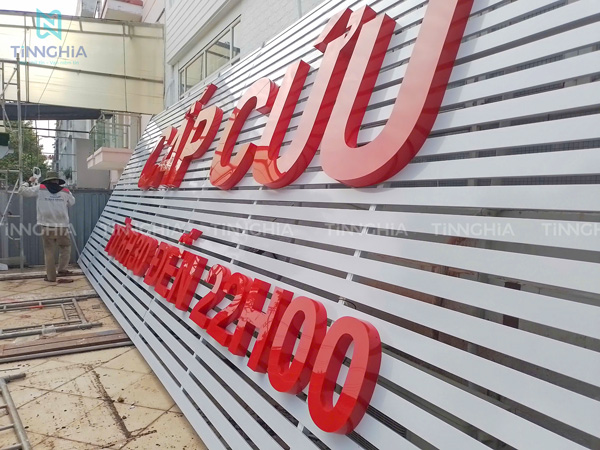 - Bảng hiệu tôn chữ nổi: Loại bảng này kết hợp tôn nền dạng biển hiệu tôn dán decal hay biển hiệu tôn gợn sóng, mặt gắn chữ nổi mica, inox hoặc alu, tạo điểm nhấn thu hút ánh nhìn, phù hợp với các doanh nghiệp cần gây ấn tượng mạnh.