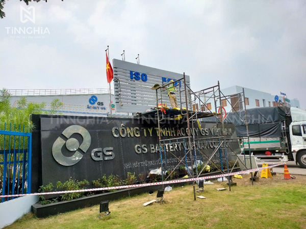 Làm bảng hiệu chữ nổi inox công ty (Khách hàng: Ắc quy GS Việt Nam khu công nghiệp VSIP I)