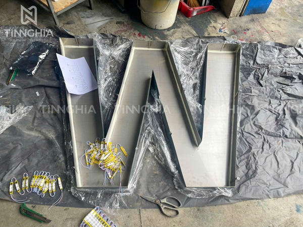 Làm chữ inox đèn LED hắt sáng chân đẹp giá rẻ
