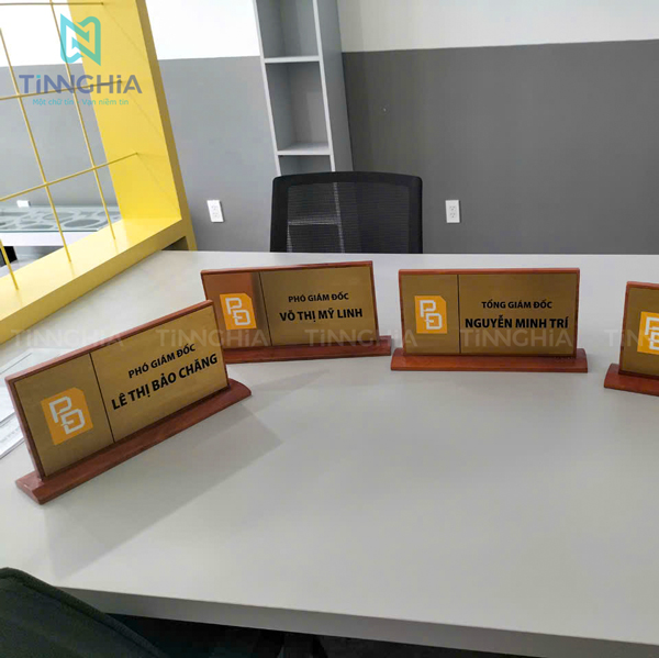 - Bảng Tên Chức Danh Nhân Viên: Thường đặt trước bàn làm việc, phòng riêng của nhân viên, giúp nhận diện vị trí và chức vụ một cách rõ ràng.