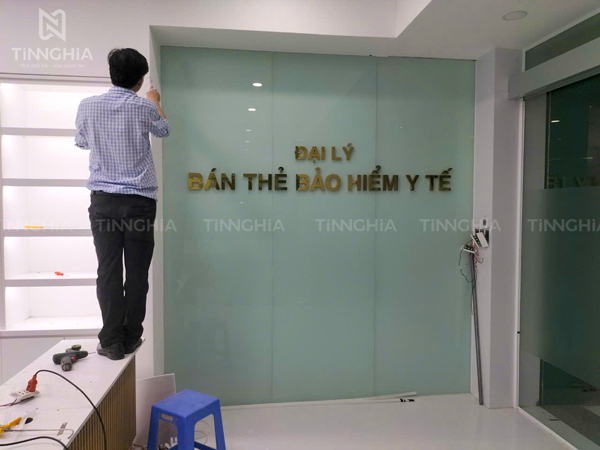 Làm chữ nổi inox gắn backdrop văn phòng Bình Dương