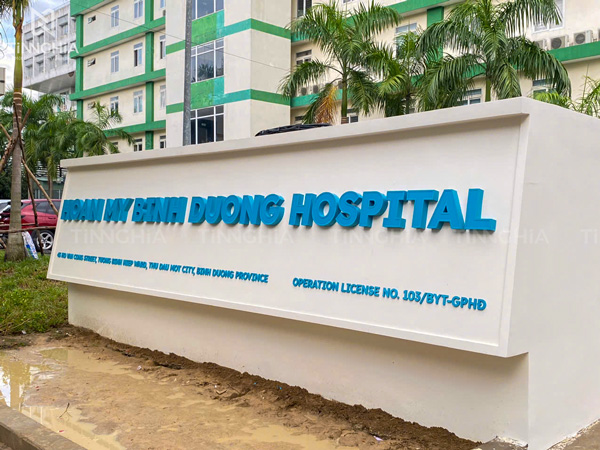 Làm biển hiệu chữ nổi inox LED sáng mặt bằng mica Bình Dương (Khách hàng: Bệnh viện Hoàn Mỹ)