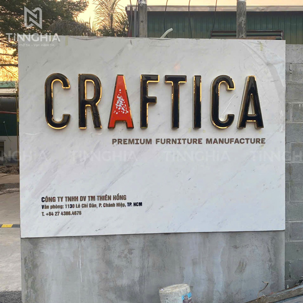 Làm chữ nổi inox mica sáng LED cho công ty tại Bình Dương (công ty Craftica)