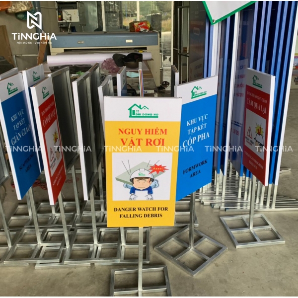 - Lựa Chọn Chất Liệu: Biển báo được làm từ các vật liệu như bảng tôn dán decal, hoặc làm biển báo bằng mica bền bỉ, chịu được thời tiết khắc nghiệt, giúp biển báo duy trì độ mới trong thời gian dài.
