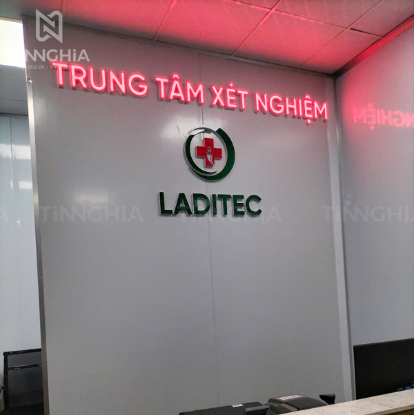 Ốp alu chữ nổi lễ tân phòng khám, trung tâm xét nghiệm